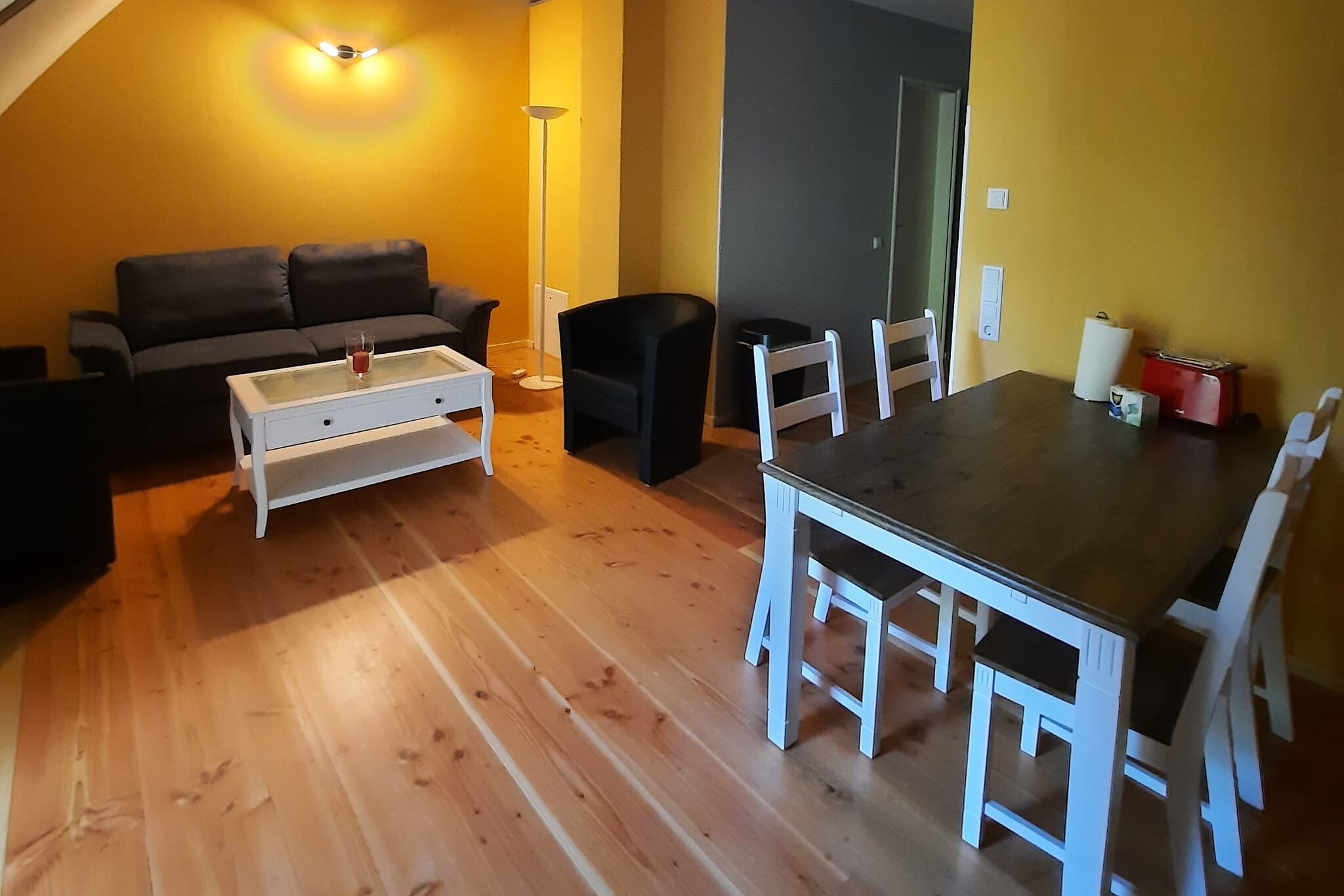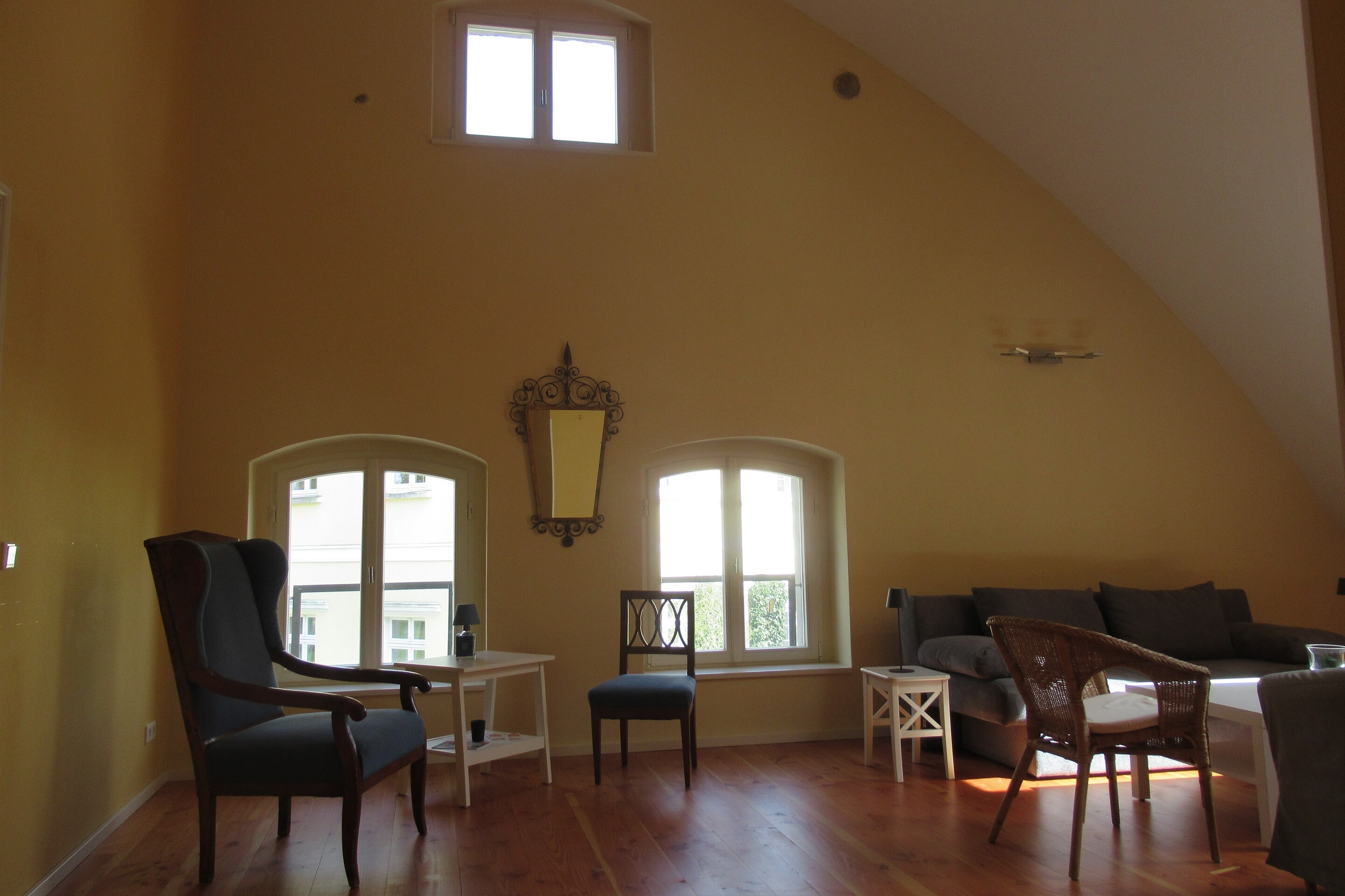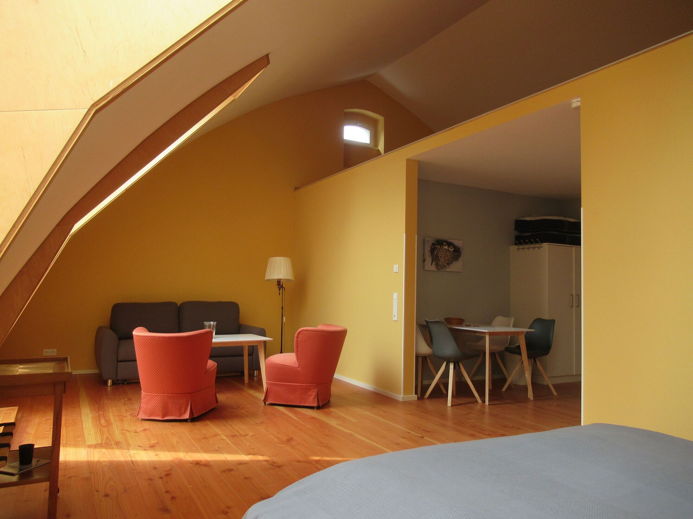 The three holiday apartments are located on the upper floor and are accessible via an external staircase. They offer upscale amenities and a unique ambience.