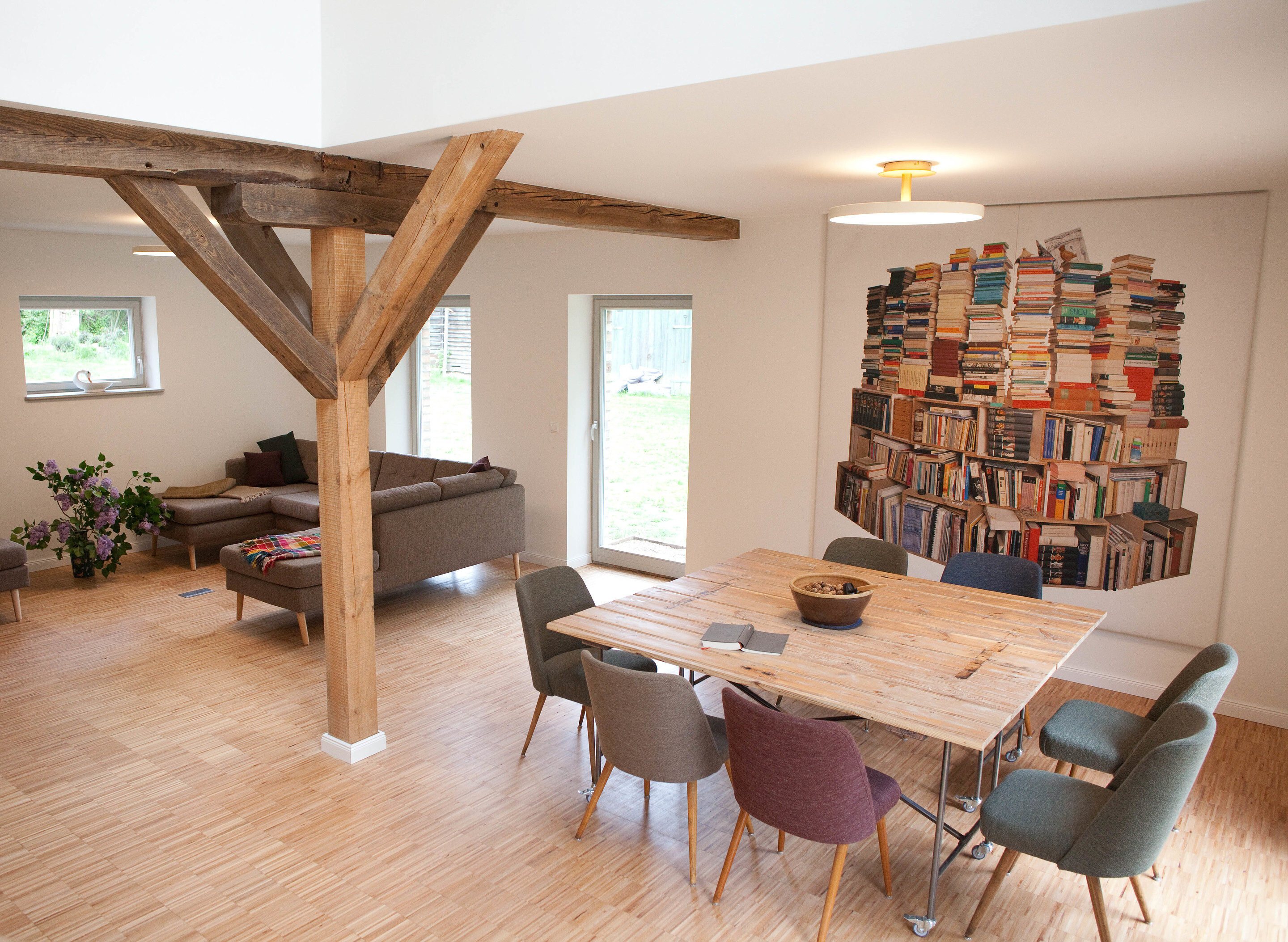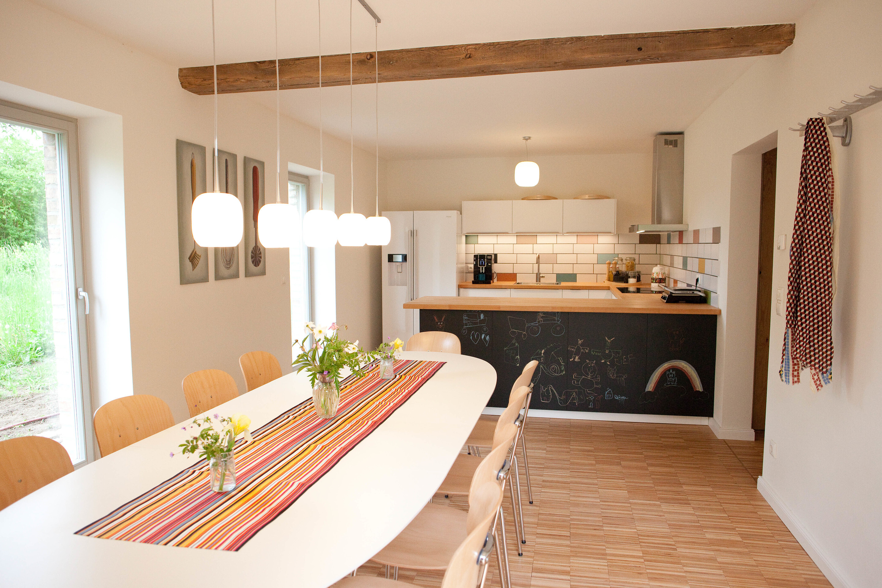 The Sankt Unterholz seminar and holiday home is quietly located in the Kraatz district of the Uckermark. The building, originally used as a stable, was ecologically converted into a modern holiday and work retreat and offers space for 8–10 people.