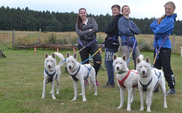 Jugendliche ab 12 Jahren können an größeren Wandertouren teilnehmen, auf denen jeder Teilnehmer seinen Husky allein führt.