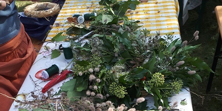 Wir stellen die Naturmaterialien. Gerne können Sie noch Dekorationsmaterialien von Zuhause mitbringen. Falls vorhanden bringen Sie bitte gerne eine Gartenschere mit.